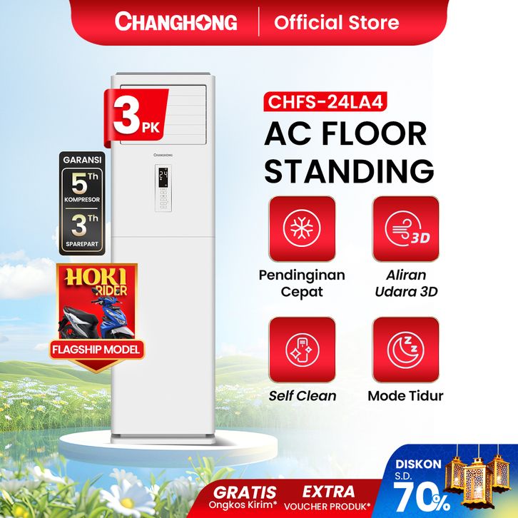 CHANGHONG AC 3 PK Split Follow Standing Cabinet Machine CHFS-24LA [Hanya INDOOR + OUTDOOR ] Freon R-410a-Daya 2250-Watt