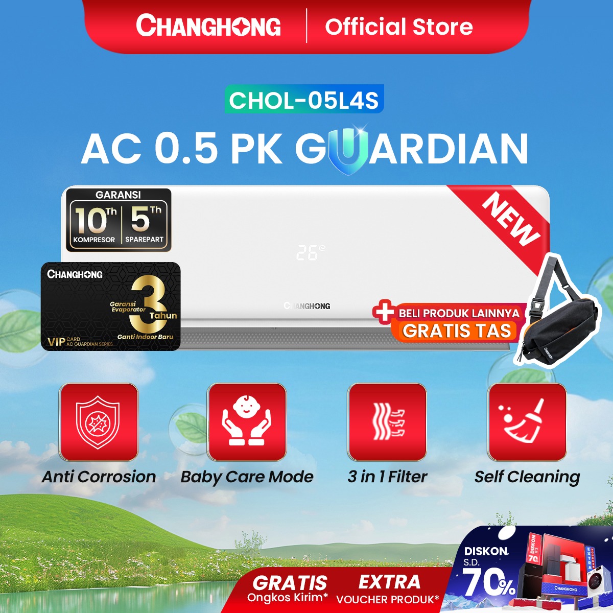 NEW PRODUCT CHANGHONG AC 1/2 PK GUARDIAN SERIES STANDARD CHOL-05L4S [INDOOR + OUTDOOR UNIT ONLY]