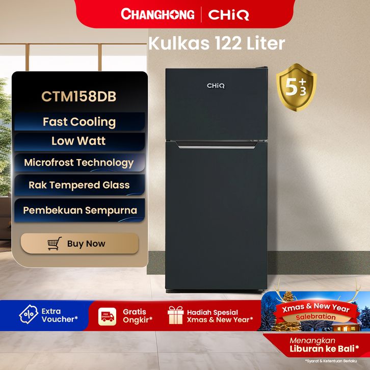 Seri CHANGHONG CHiQ Kulkas 2 Pintu Refrigerator Kapasitas 122 Liter - CTM158DB Black