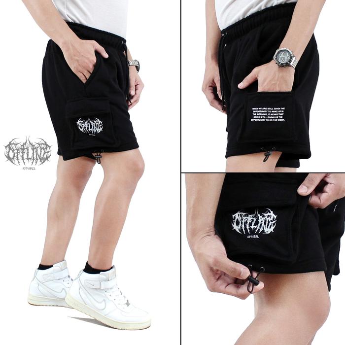 Offline Celana Cargo Pendek / Celana Pendek Pria Dan Wanita / Celana Santai - Hitam, M