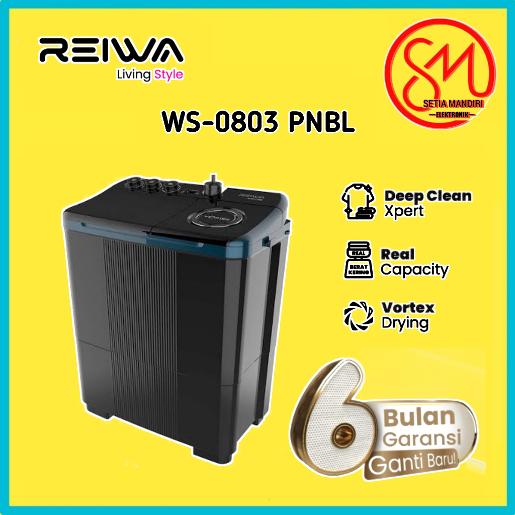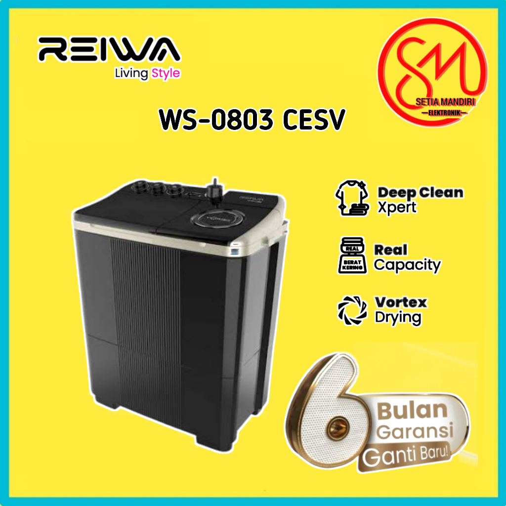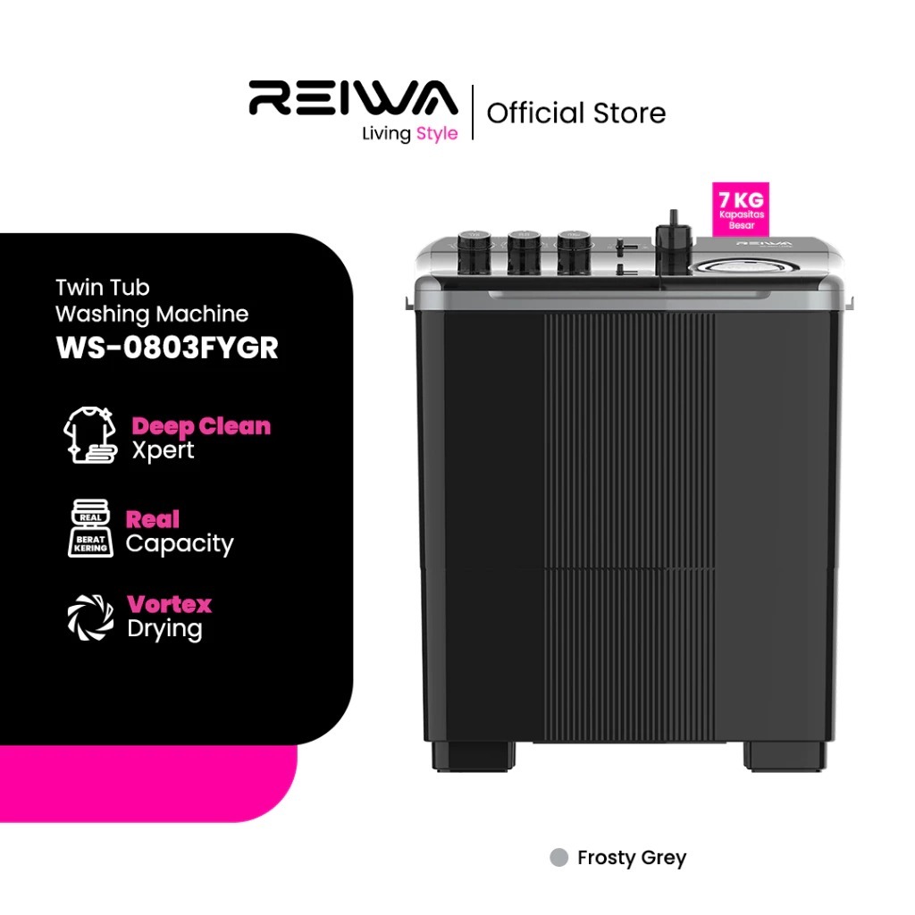 REIWA Mesin Cuci 2 Tabung 7Kg 9Kg WS0803FYGR Twin Tub Top Loading 7 9 KG Frosty Grey