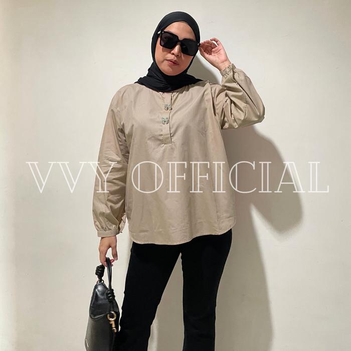 Atasan Wanita Lengan Panjang Kemeja Oversize Terbaru Bahan Katun - Hitam