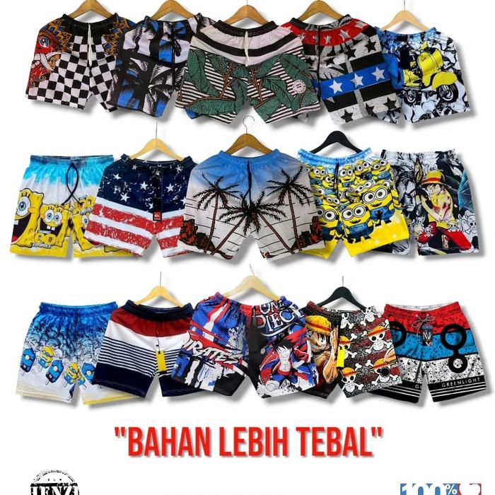 Boxer Fullprint 100Rban Dpt 10 | Bahan 20S Lebih Tebal | Celana Pendek Dewasa - Paket 10 (1 Paket Isi 10Pcs), All Size