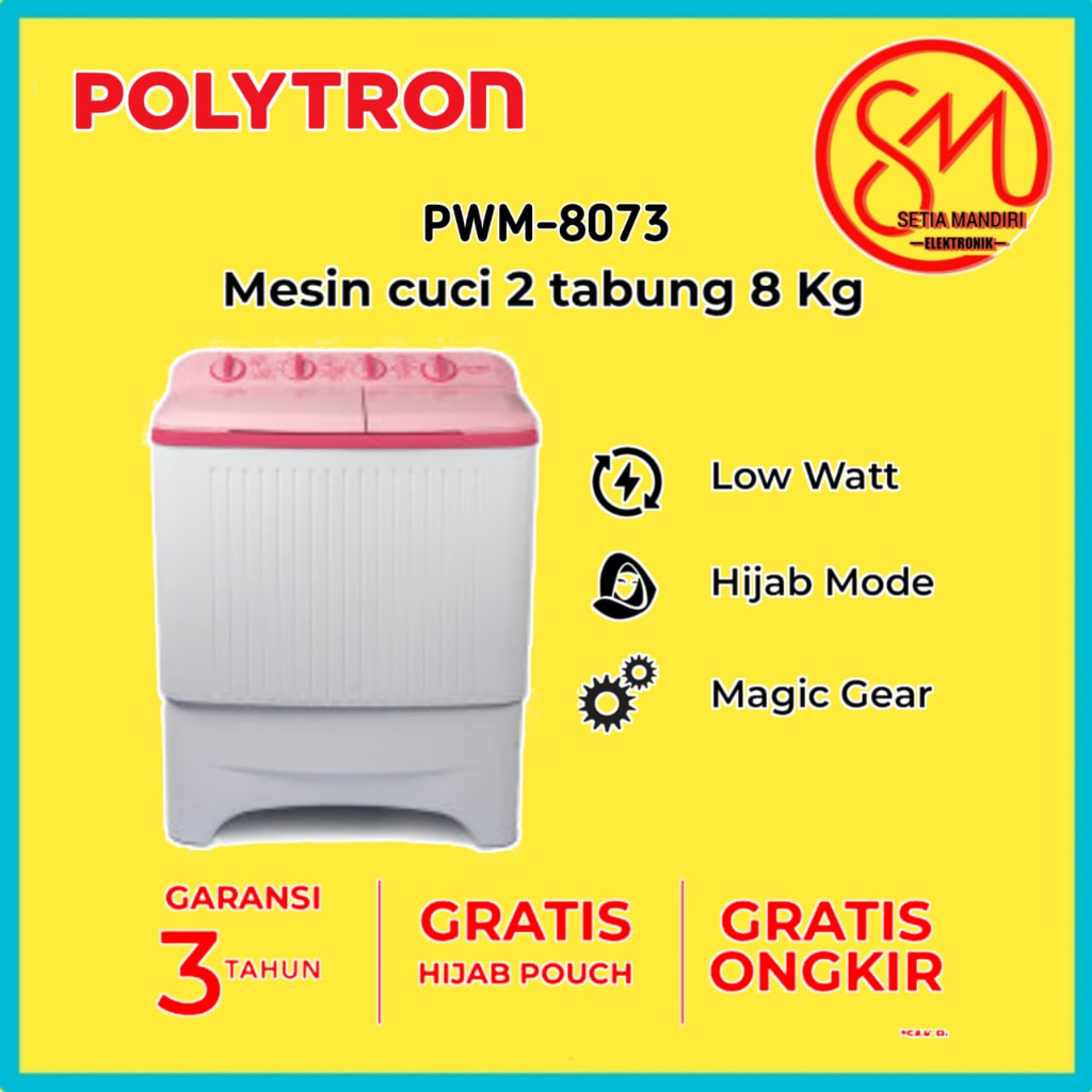 Polytron Mesin Cuci 2 Tabung 7KG PWM7073 8KG PWM8073