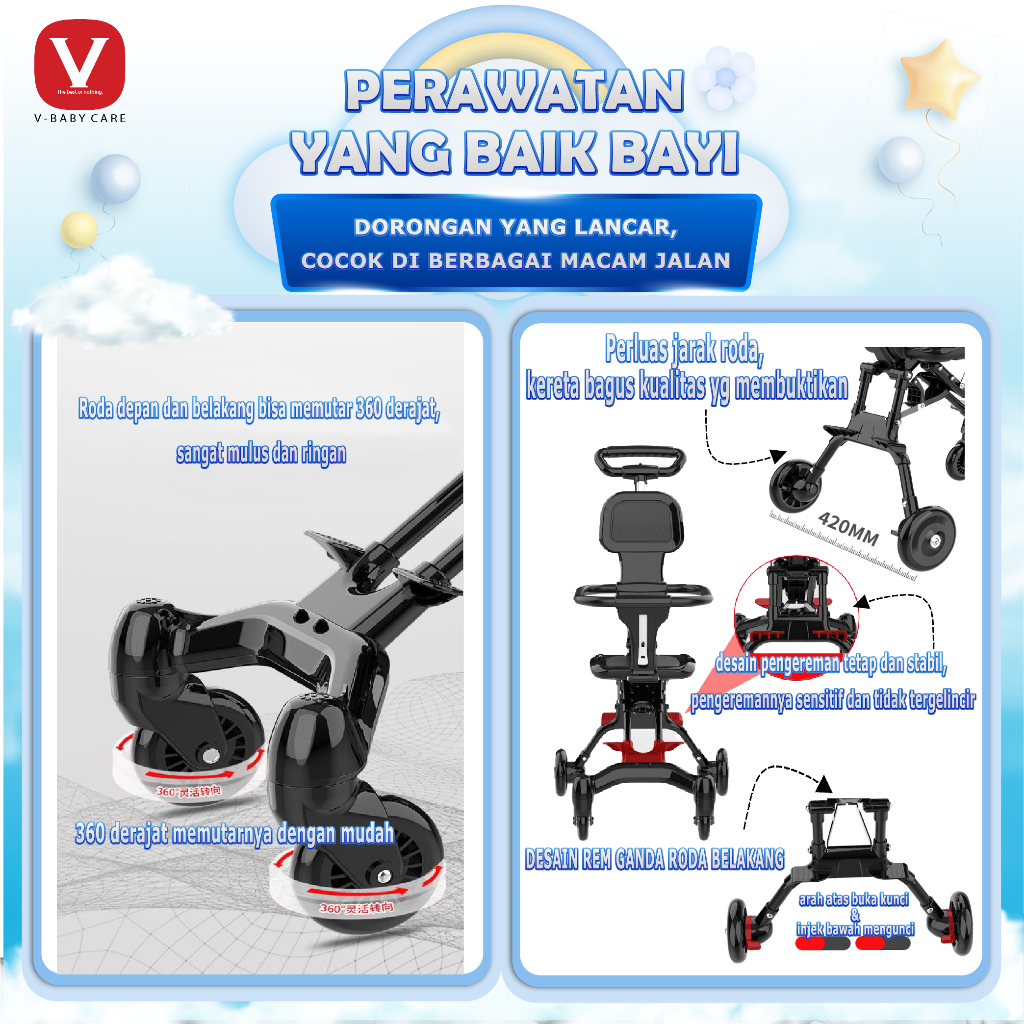 Stroller Bayi Sugar Baby Care 2 Arah Kereta Dorong Praktis Dan Nyaman