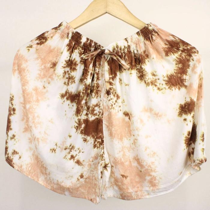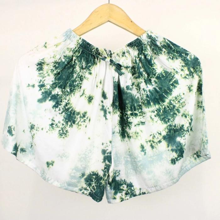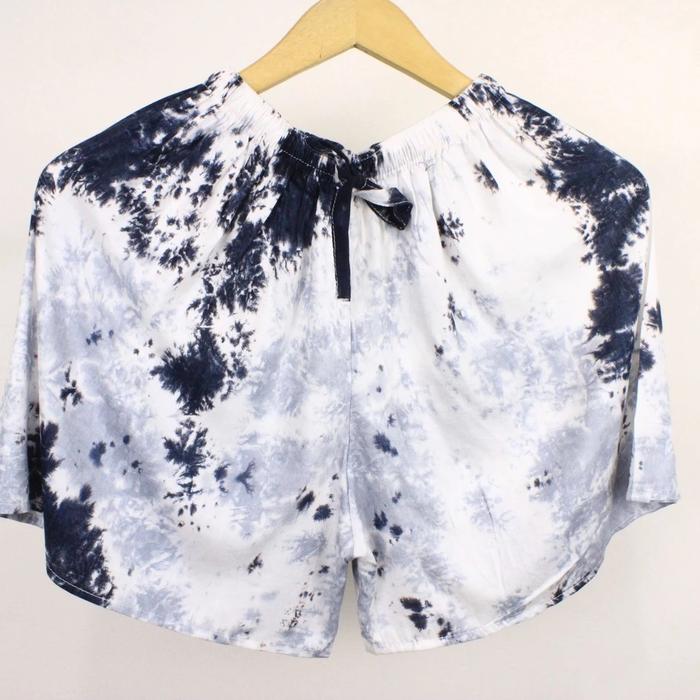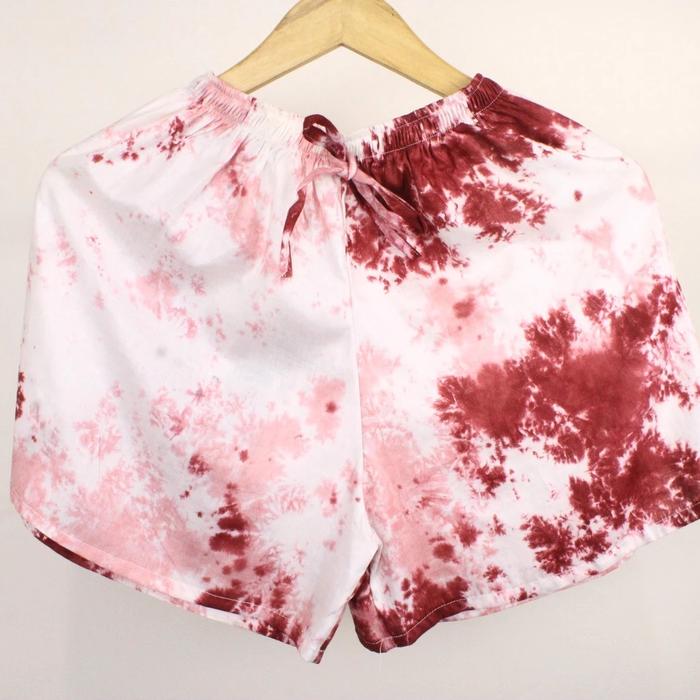 Celana Pendek Pria/ Wanita Bahan Rayon Motif Tie Dye Nyaman Bonus Scrunchies Shorts Santai - Abu Hitam