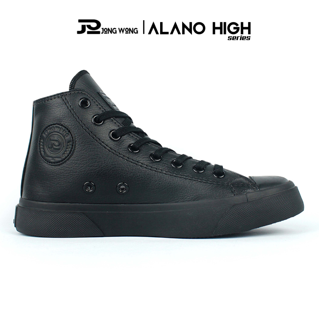 Jong Wong Official - Original Alano Full Black High | Sepatu Sneakers Kulit Casual Pria Wanita