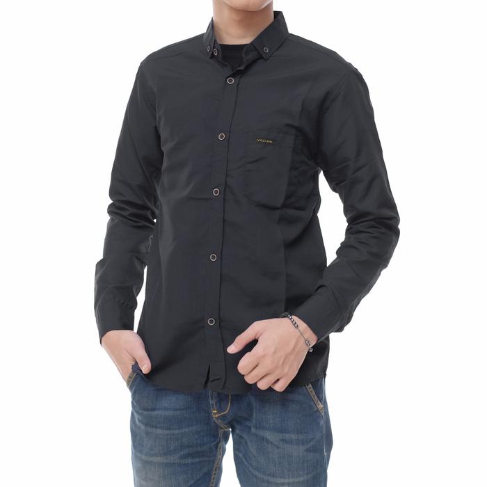 Kemeja Polos Pria Lengan Panjang - Hitam, M