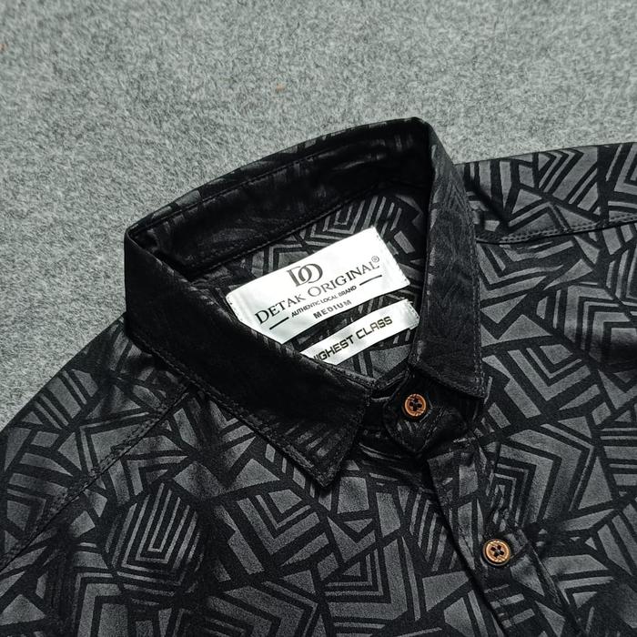 Detak Original Kemeja Embos Sultan Lengan Pendek Pria Hitam Etnik Casual Slim-Fit - Hitam Etnik, M | Medium