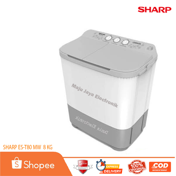 SHARP Mesin Cuci 2 Tabung 8 KG EST 80 MW Low Watt Cuci dan Kering