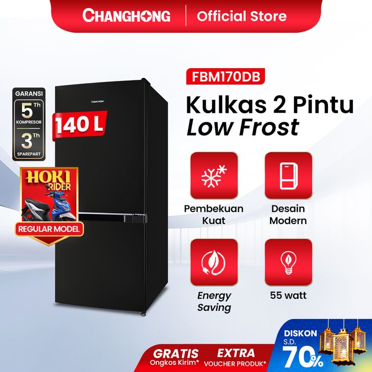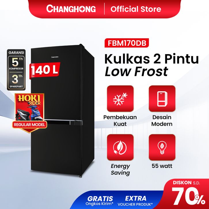 Changhong Kulkas 2 Pintu (Bottom Mounted Refrigerator) Lemari Es Kapasitas 140 Liter FBM170DB Black (Semi Auto Defrost)