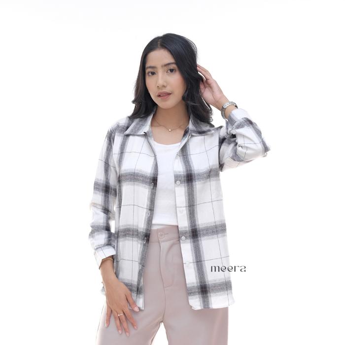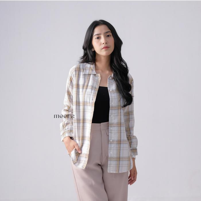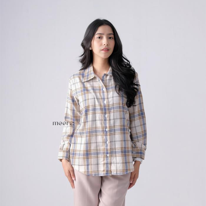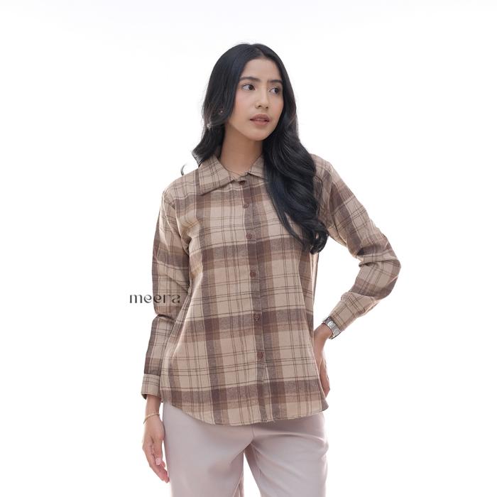 Kemeja Flanel - Flannel Shirt Atasan Wanita Kemeja Panjang Kerah V Neck Kemeja Casual Baju Katun Flanel Cewek Dewasa -