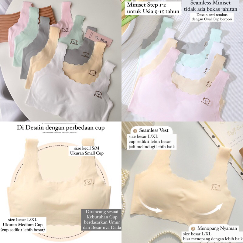 UpMiss Miniset Step 12 S,MStandar Small Cup | L,XLLittle Big Cup 915tahun Bra Teens Miniset Rompi Remaja Tanpa Busa