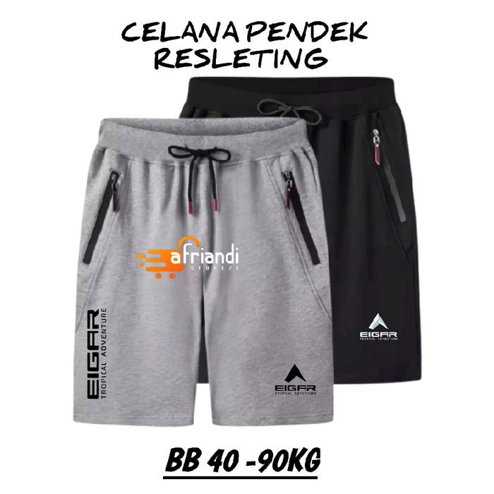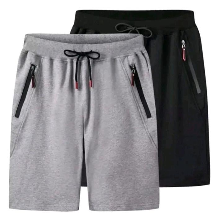 Celana Pendek Fleece Katun Resleting Dewasa Jumbo Tebal Logo Sablon Santai Nyaman Shorts Boxer Keren Pria Wanita Hitam S