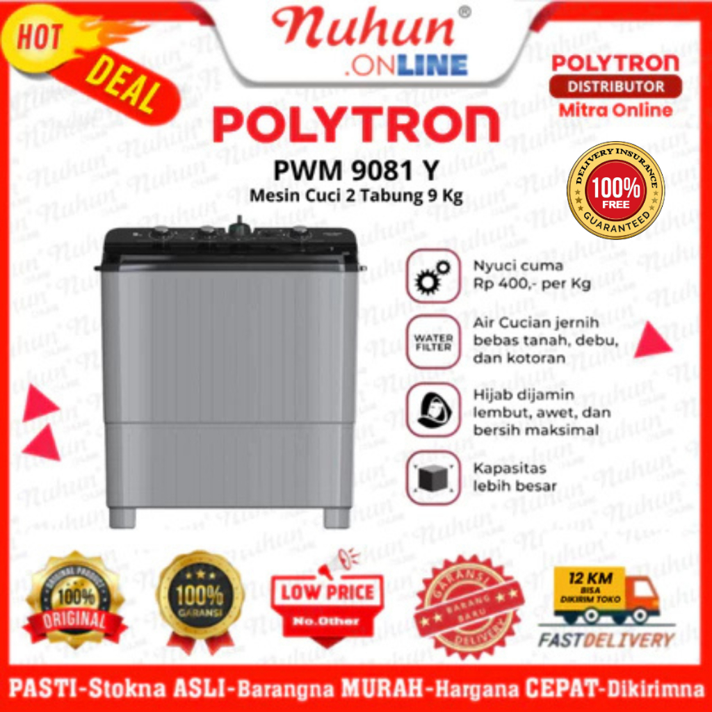 Polytron Mesin Cuci 2 Tabung PWM 9081 Y 9kg
