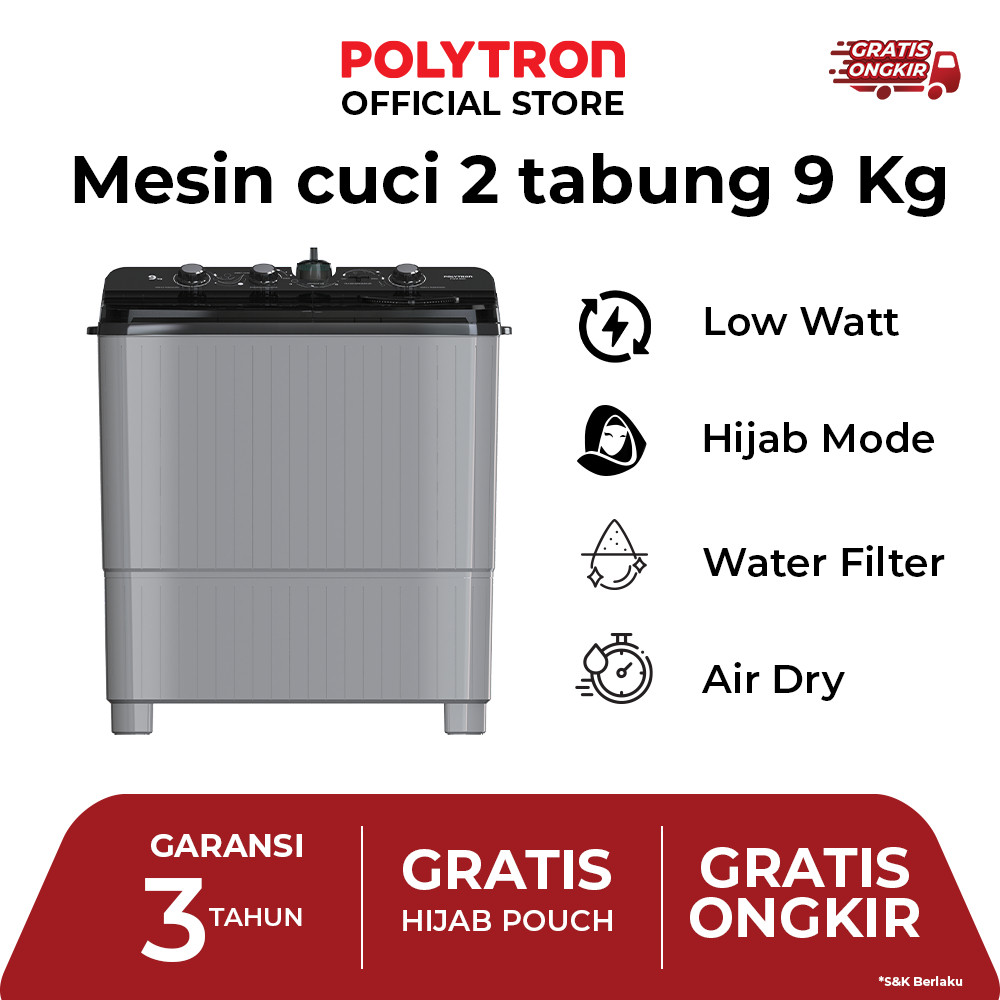 POLYTRON Mesin Cuci 2 Tabung Primadona Giant Series Hijab 9 Kg PWM 9081Y Garansi Resmi