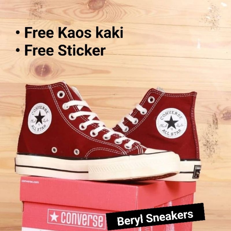 Sepatu Converse 70s HI Maroon Burgundy / Converse 70s Hight Maroon / Converse 70s Merah Marun Premium Terlaris