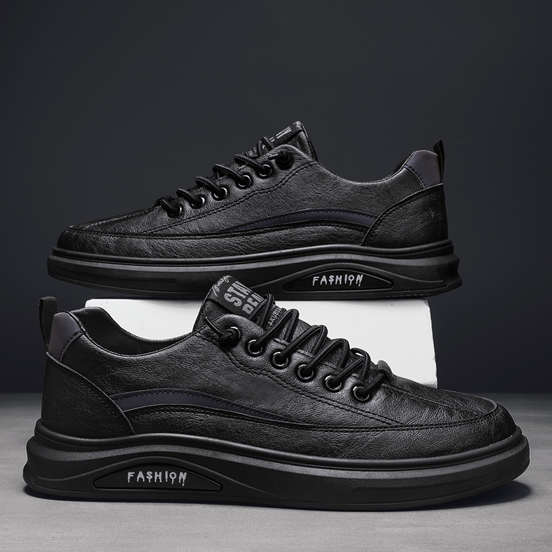 Leedoo Sepatu Pria Kulit Sneakers Casual Kekinian Cowok Kerja Tali Kekinian Sepatu Laki Remaja Hitam MC440