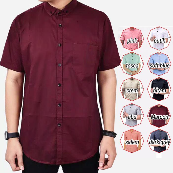 Kemeja Polos Lengan Pendek Pria Casual Baju - Katun Premium Oxford & Pooplin - Formal, Hitam - Hitam, M