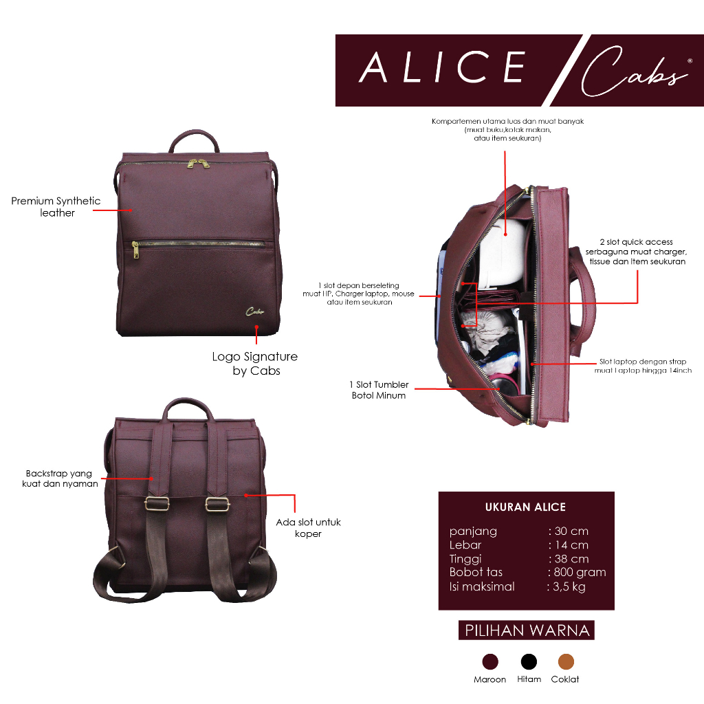 Cabs Pocket - Tas Ransel Wanita Kerja Backpack Traveling Kekinian Muat Laptop 14 Inch - Alice Bag