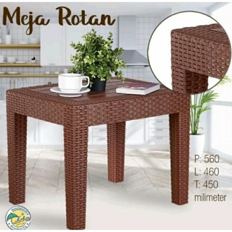 MEJA PLASTIK / MEJA TAMU / MEJA KOPI / MEJA TERAS MOTIF ROTAN TABITHA / MEJA SOFA