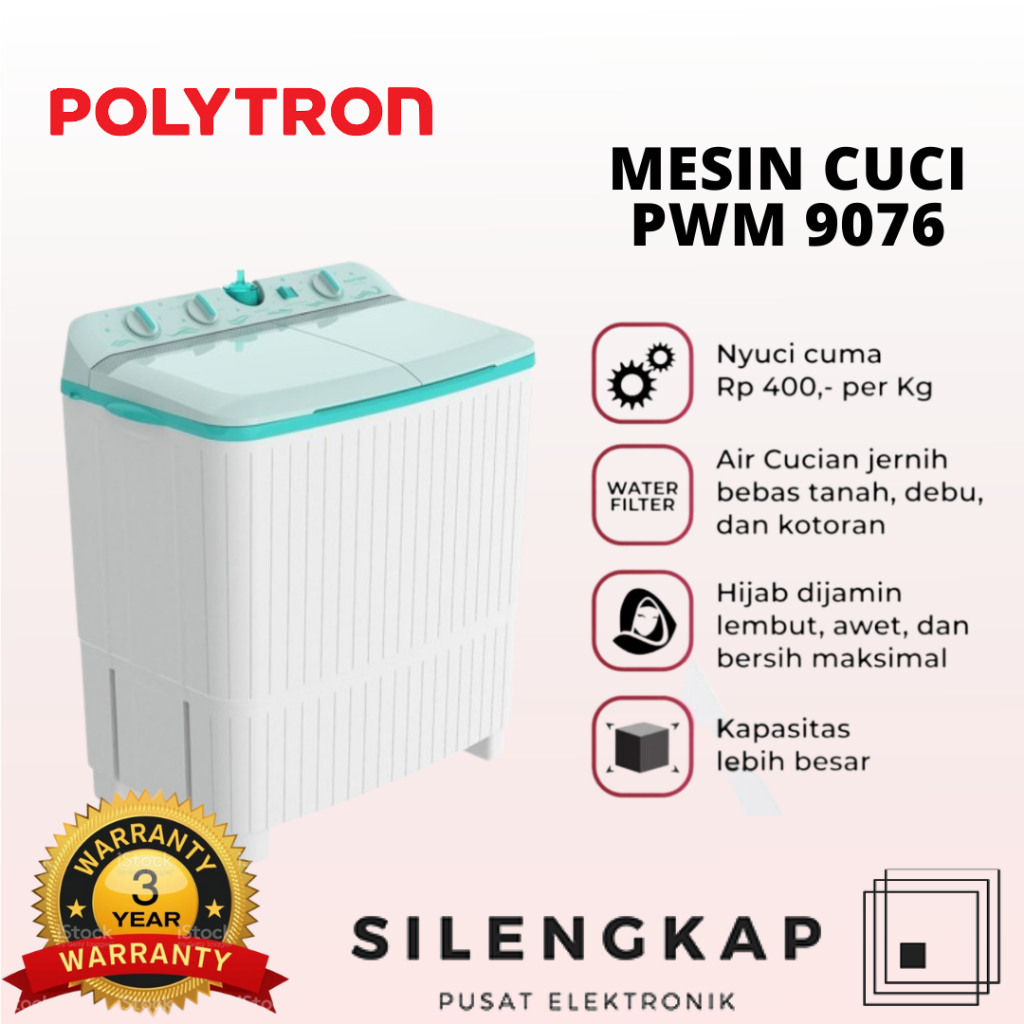 MESIN CUCI POLYTRON 2 TABUNG PMW 9076 Y 9 KG