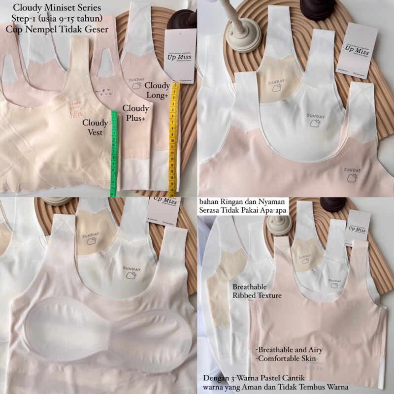 UpMiss Long+ Cloudy Miniset Step1 Cup Nempel Tidak Geser Seamless Vest |
