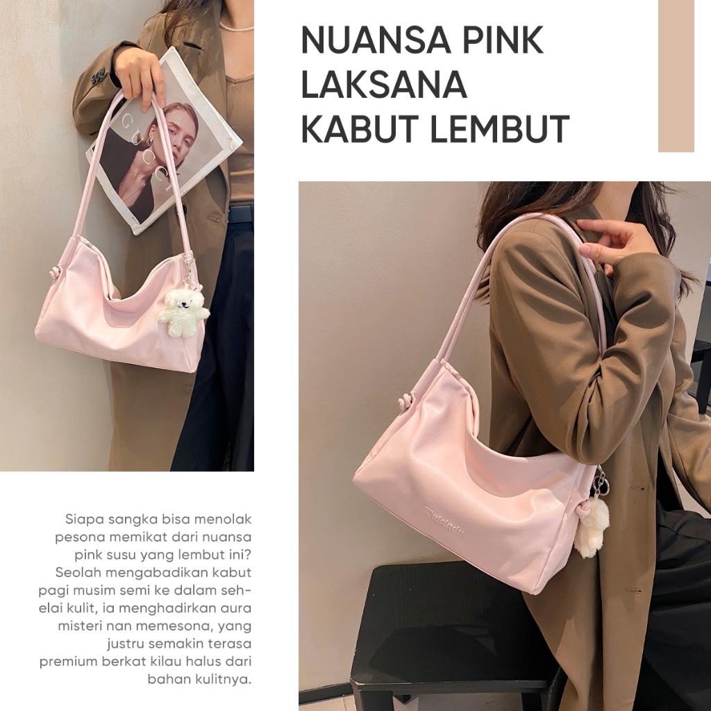 Qutelady Shoulder Bag Wanita Vintage Aesthetic Tas Bahu Wanita Lucu Tas Tote Wanita Mini Qt-823