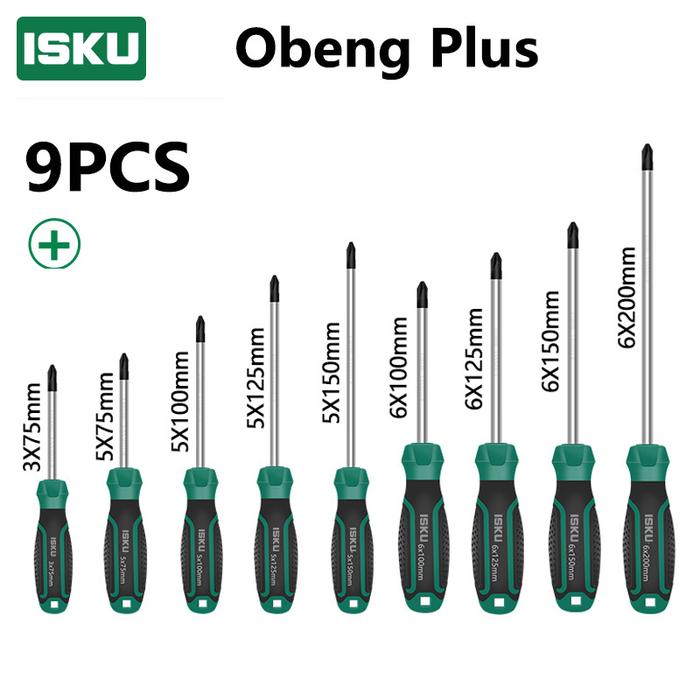ISKU obeng set 9 pcs 75-200mm plus screwdriver set tip magnetik