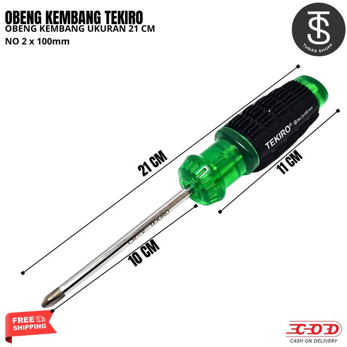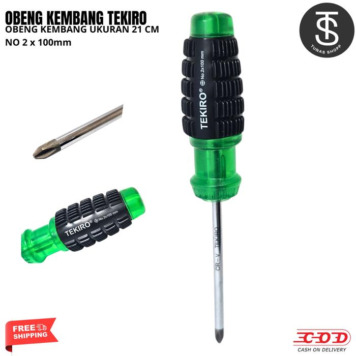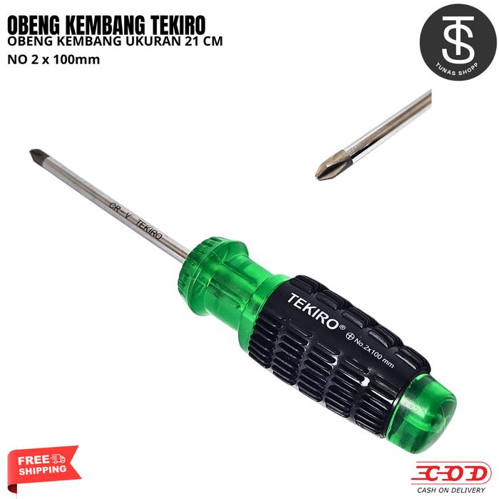 TEKIRO Obeng Kembang 2x100mm / Tekiro Obeng Plus Presisi Tahan Lama / Obeng TEKIRO Philips (+) Gagang Anti Slip