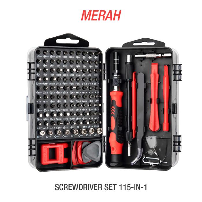 [115-in-1] Obeng Set Magnetic Peralatan Servis Gadget Presisi Tinggi | Complete Repair Screwdriver Set - Merah 115-in-1