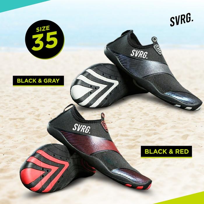 SVRG. Beach Shoes - Sepatu Olahraga Pantai - Sepatu Poundfit Hiking Anti Karang - 35, Black & White