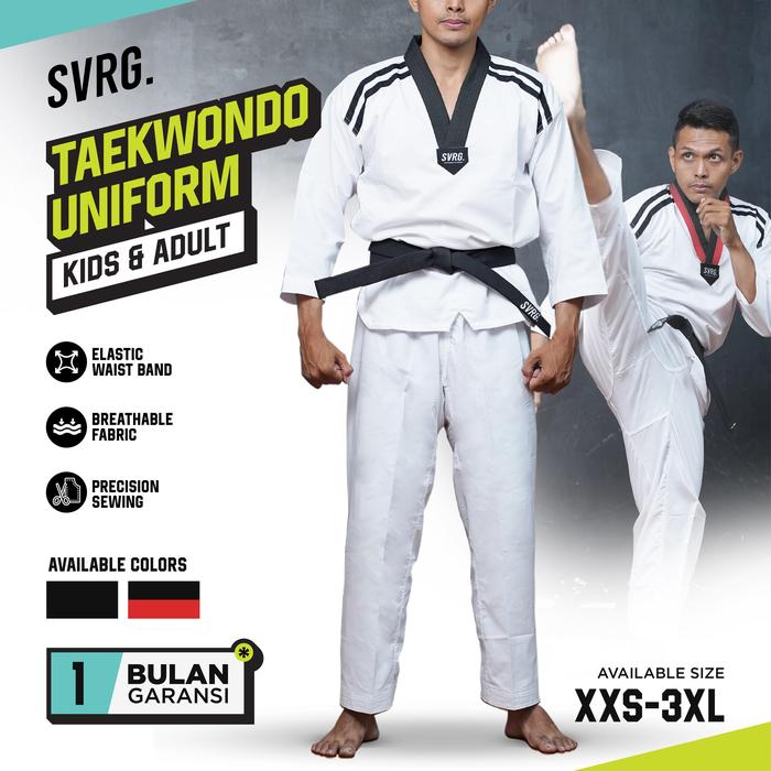 SVRG. Dobok Taekwondo - Baju Taekwondo Kerah Merah Hitam - XXS