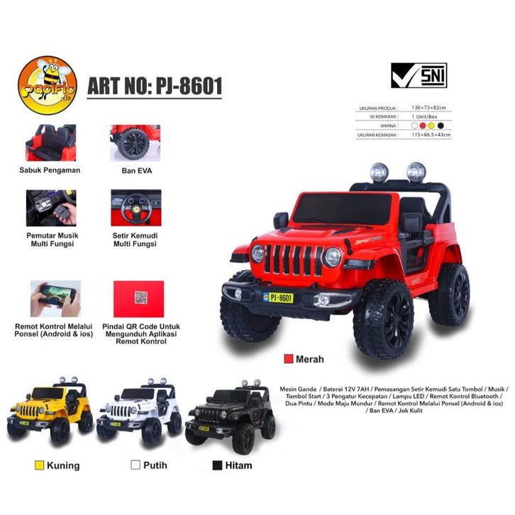 Mobil Aki Mainan Anak Jeep Rubicon PACIFIC PJ8601 PJ-8601 Kendaraan Mainan EXOTIC EJP7735 EJP-7735