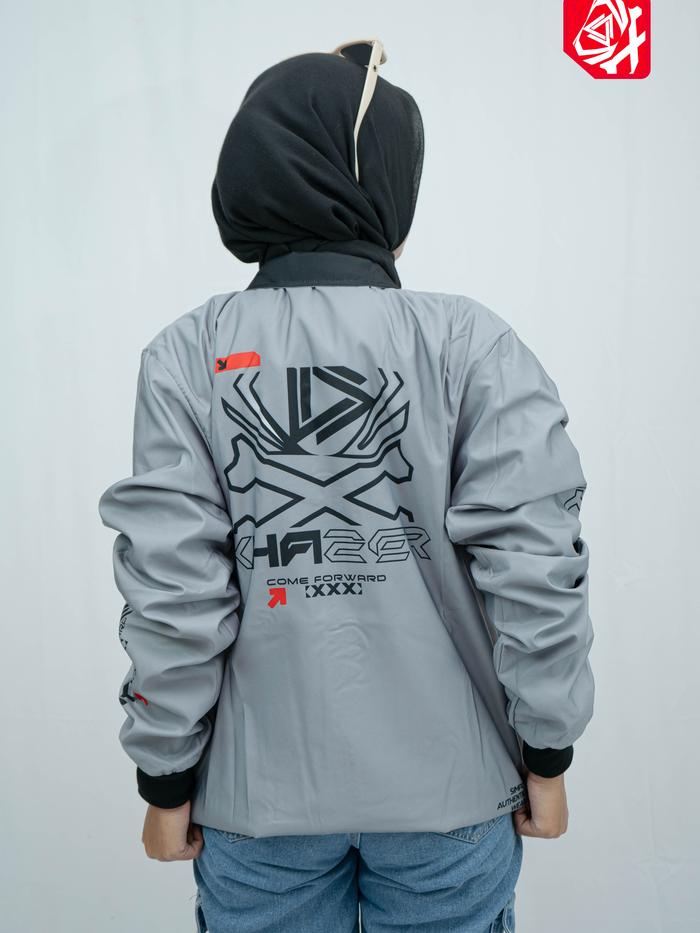 Khazer Jacket Reversible Safety Touring Black Grey Jaket Bolak Balik Cowok Casual Waterproof Tebal Jaket Kerah Tinggi