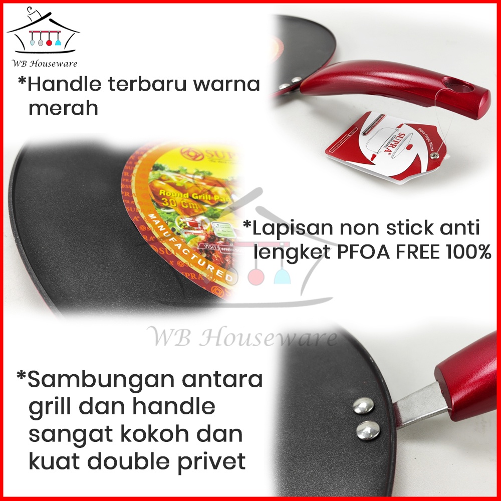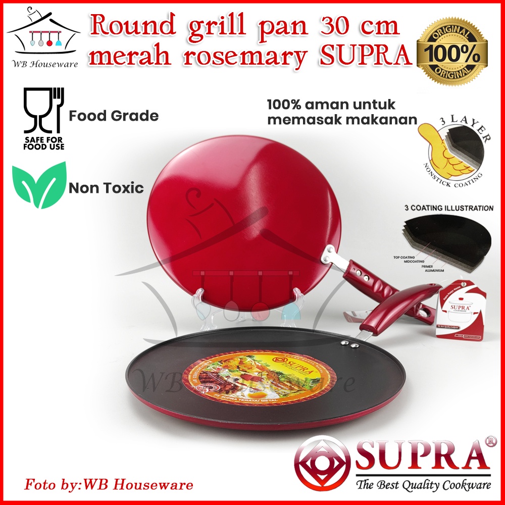 Wajan Teflon / Wajan Ceper / Wajan Gagang / SUPRA ROUND GRILL PAN 30CM - GrillPan Bulat Ceper