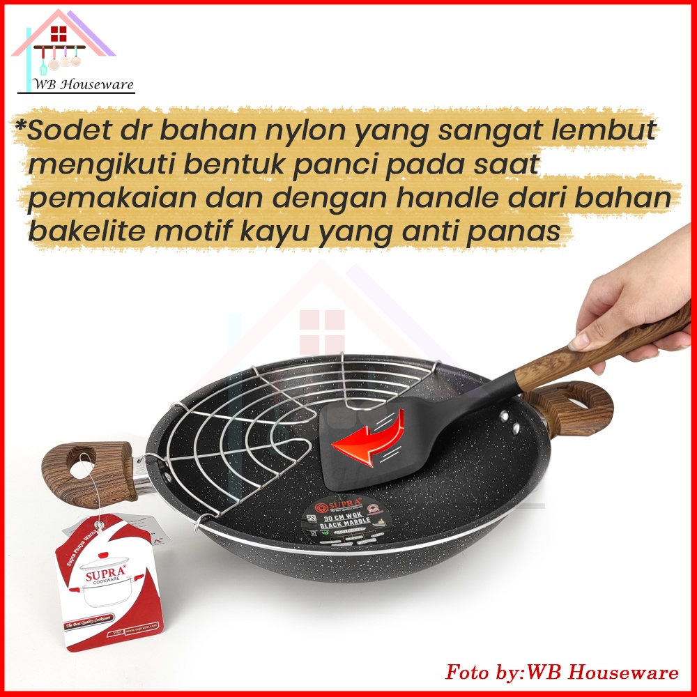 NEW SUPRA Wok set black marble 30cm + peniris + sodet / wajan kuping kuali penggorengan anti lengket