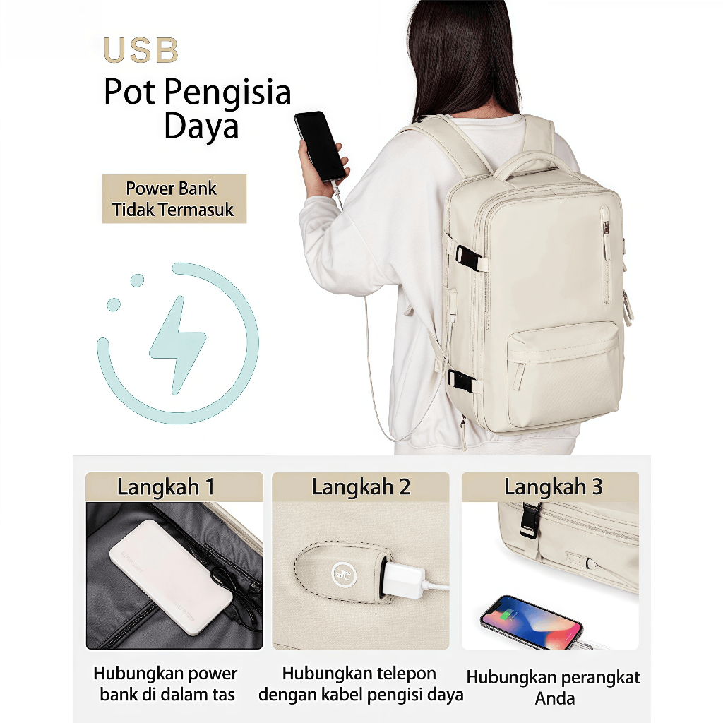 Feybaul Tas Ransel Perjalanan Kapasitas Besar Dapat Dilipat Tahan Air Tas Ransel Laptop 16 Inci Kapasitas: 35–55 Liter C