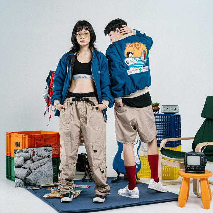 Aomizu Club Of 1986 Sailing Vintage Jacket / Jaket Jepang Oversize Bomber Flight Estetik Biru Tebal - M
