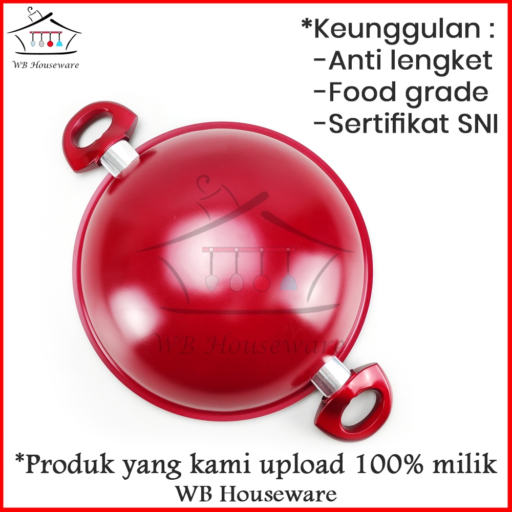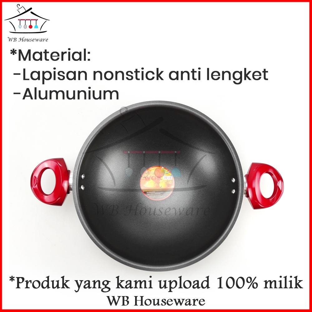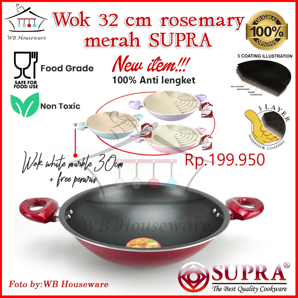 wajan kuali anti lengket teflon 32cm / panci penggorengan / Wok 32cm SUPRA rosemary - MERAH