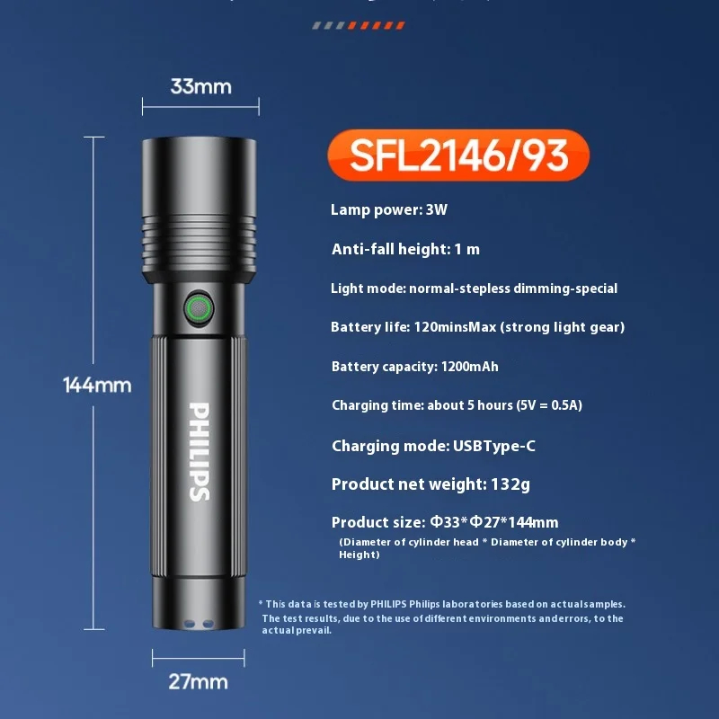 Philips Senter Led Sfl2146 Super Bright Jarak Jauh 500M Tahan Air 5 Mode Pencahayaan Baterai 220 Menit Aluminium Alloy L