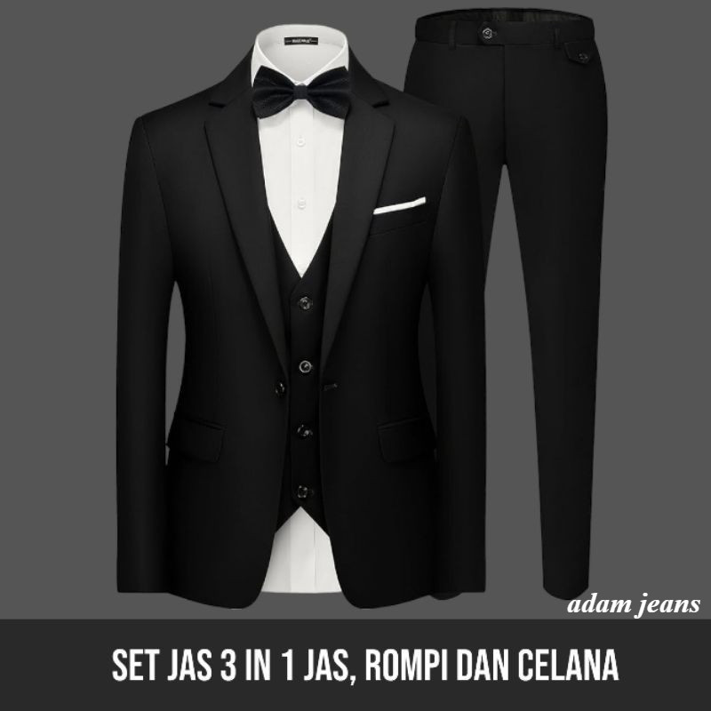 Setelan Jas 3in1 Jas Rompi Dan Celana slimfit jas hitam Blazer formal Pria,Jas Blazer kerja Pria