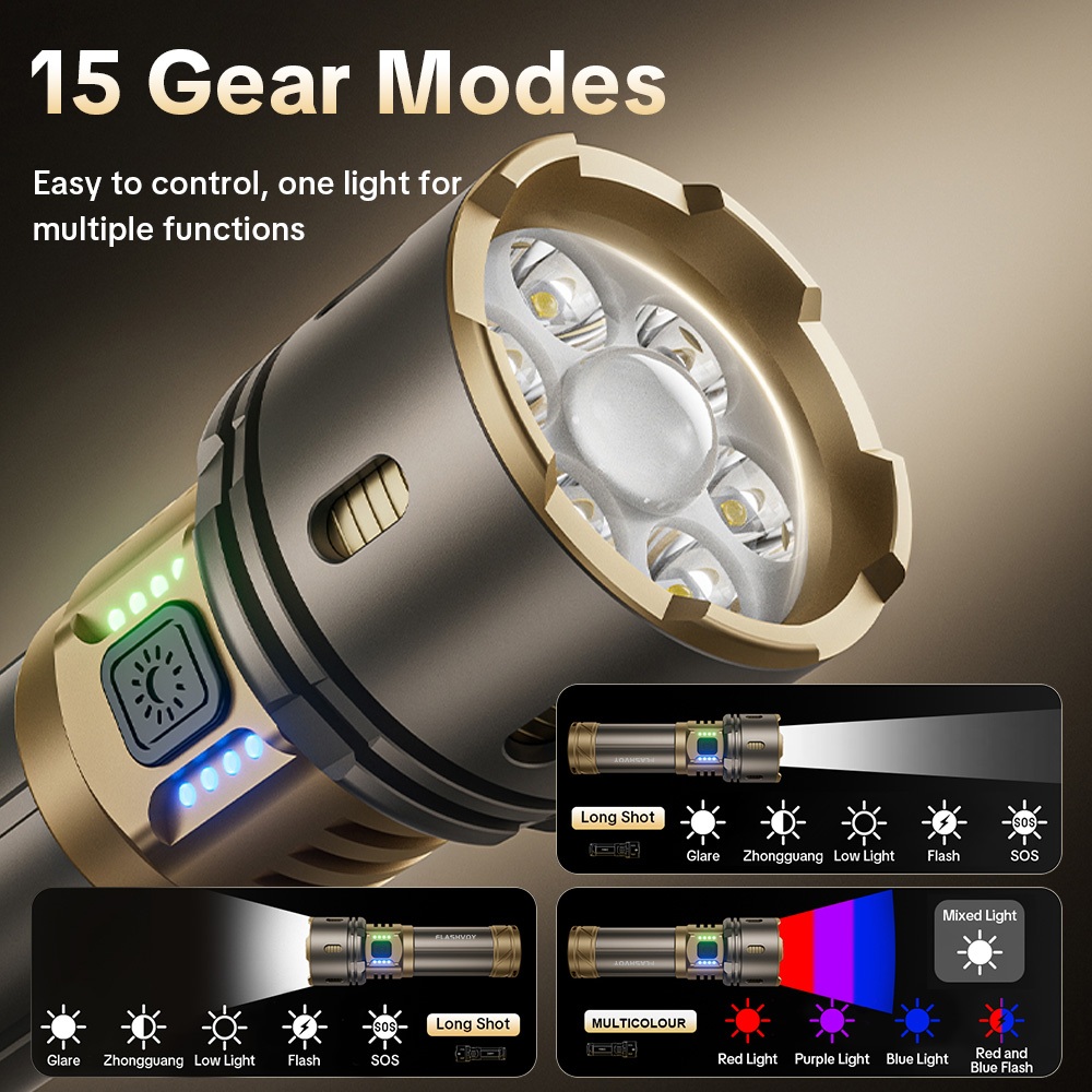 Flashvoy Senter Cas Led Laser 50W Zoom In Out Alumunium 15 Mode Waterproof With Power Bank Function Flashlight Magnetik