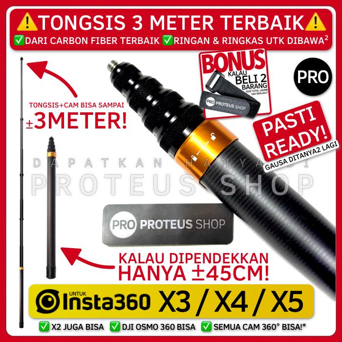 ◉ TONGSIS SELFIE STICK 3M INSTA360 X5 X4 X3 ONE X2 X CARBON FIBER INVISIBLE MONOPOD 3 METER STIK ACTION CAM UTK GOPRO BR