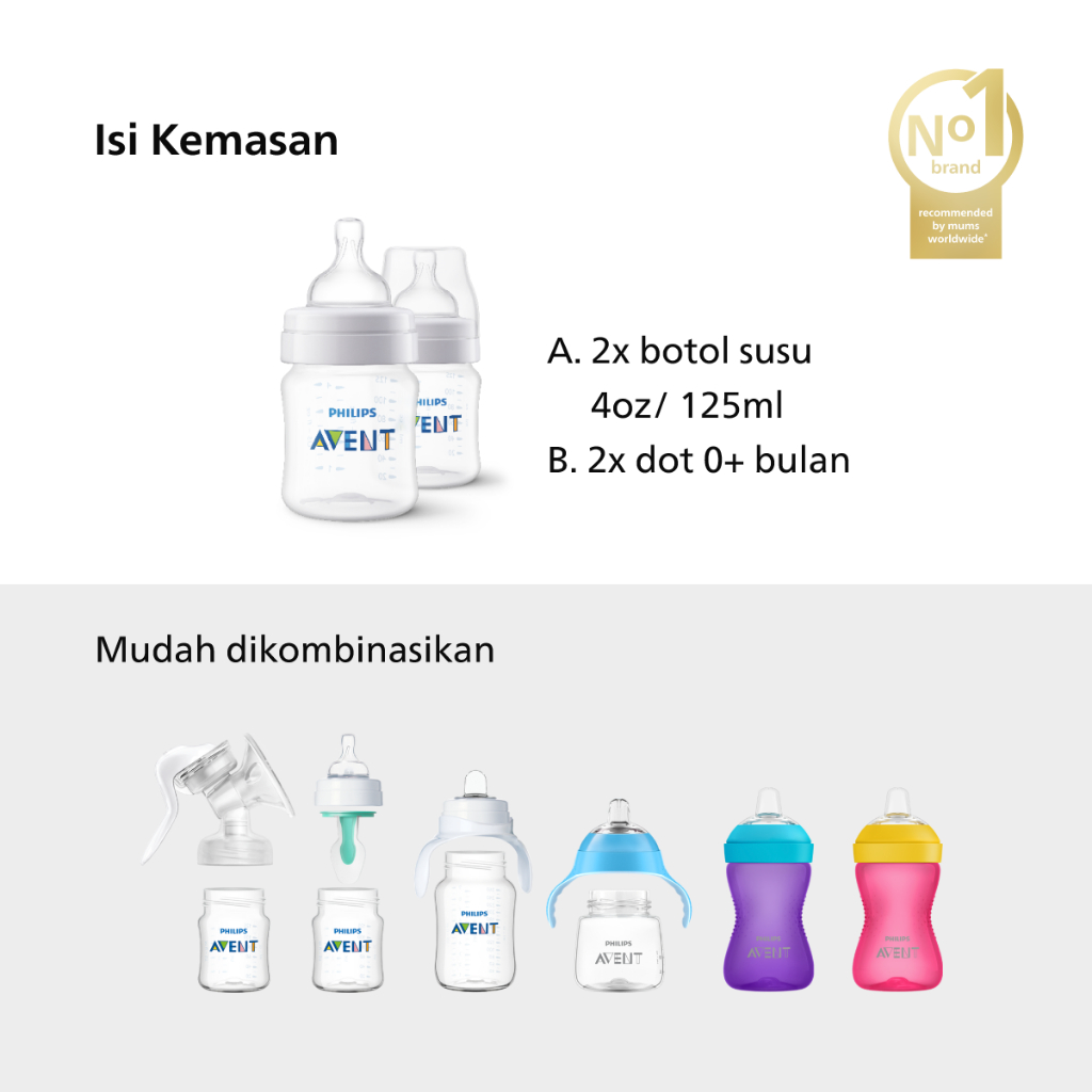 Philips Avent Classic Plus Bottle 125ml 2Pcs 0M+ SCF560/27 Botol Susu