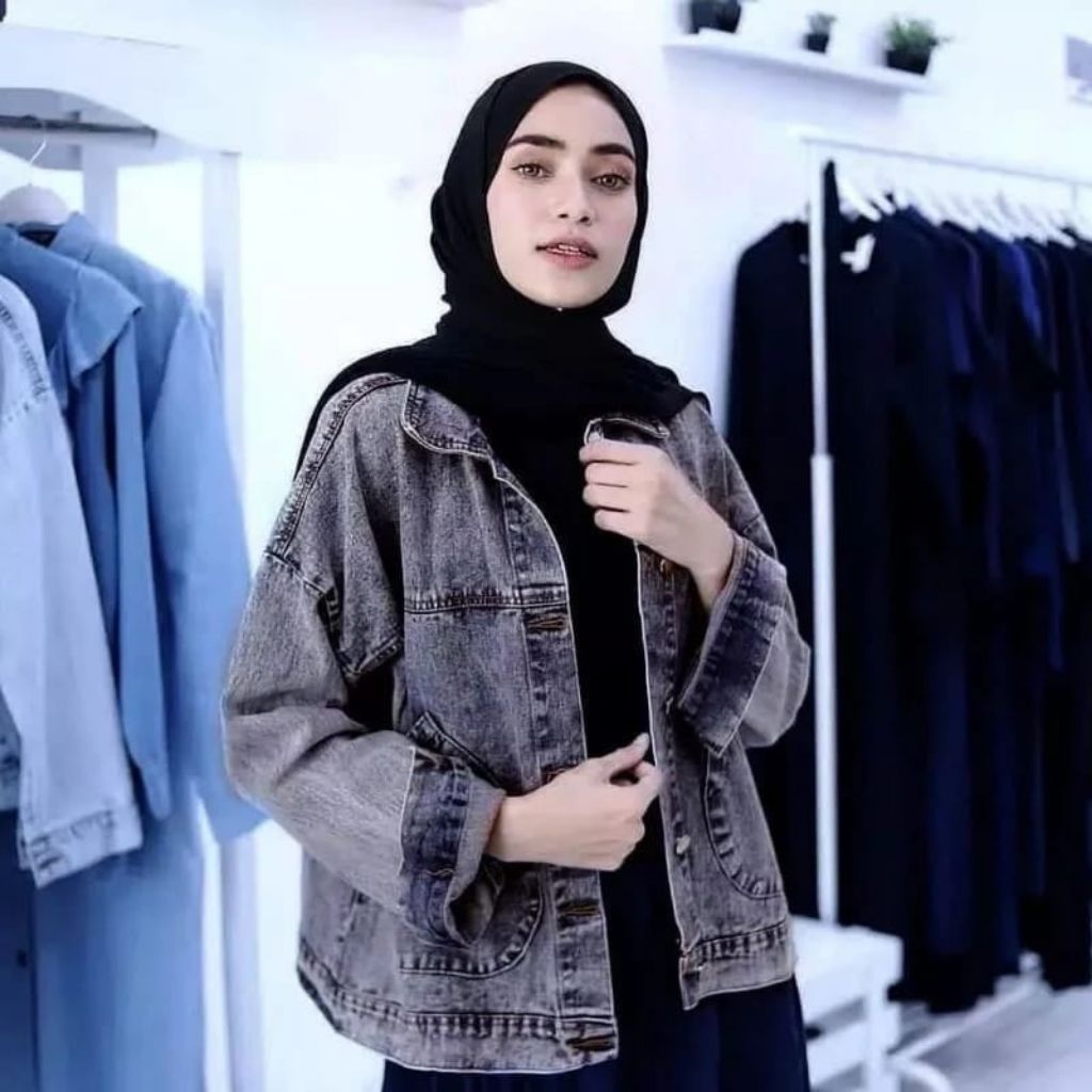 Jaket Oversize Jeans Wanita Terbaru (Pablo) Ld 120 Bahan Premium Dan Tebal
