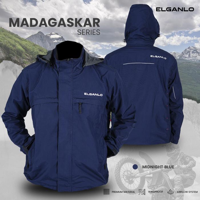 Jaket Hiking Waterproof Madagaskar Fashion Riding Multifungsi -Elganlo Jacket Sport Pria - Biru, S