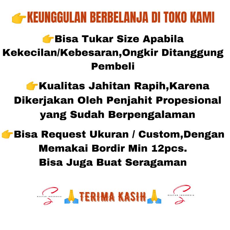 Hitam polos, Black twis, Abu grey, navy, Manggis, Cream, Hitam lis putih, Brown, Maron, Abu list putih