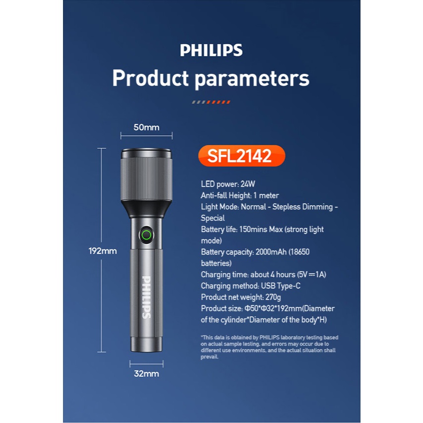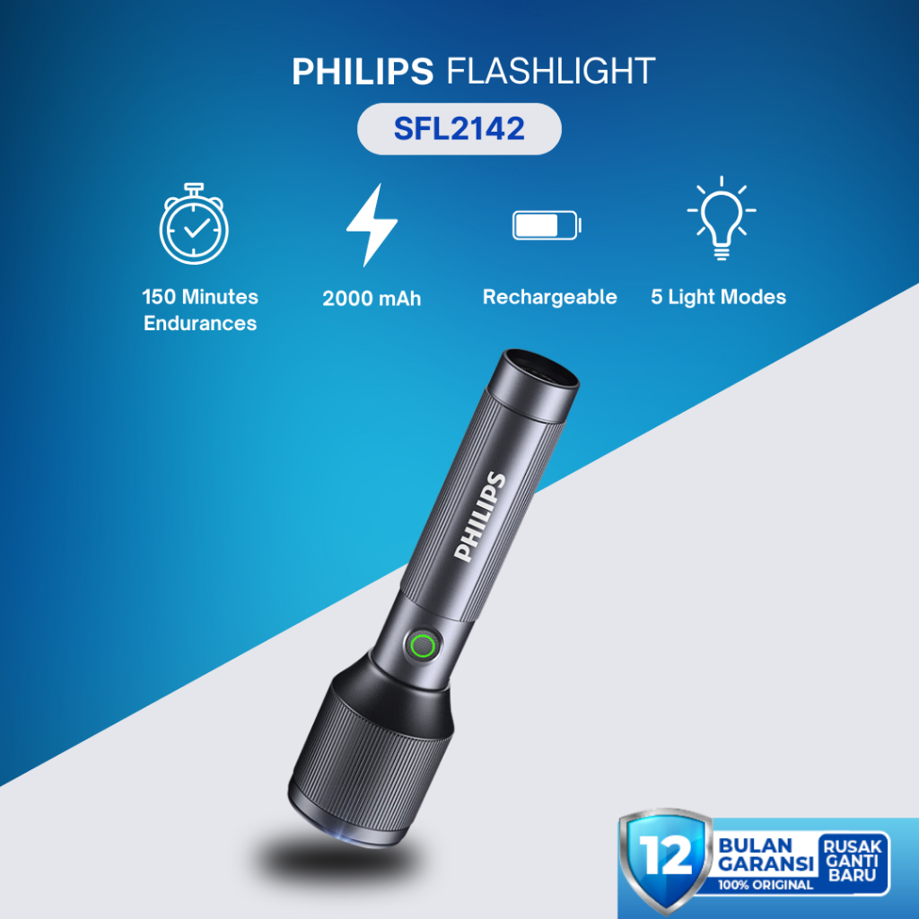 Philips - Senter Rechargeable & Adjustable Focus Flashlight Sfl 2142/56 Dark Grey 24W&1000Lm Senter Multifungsi - Garans