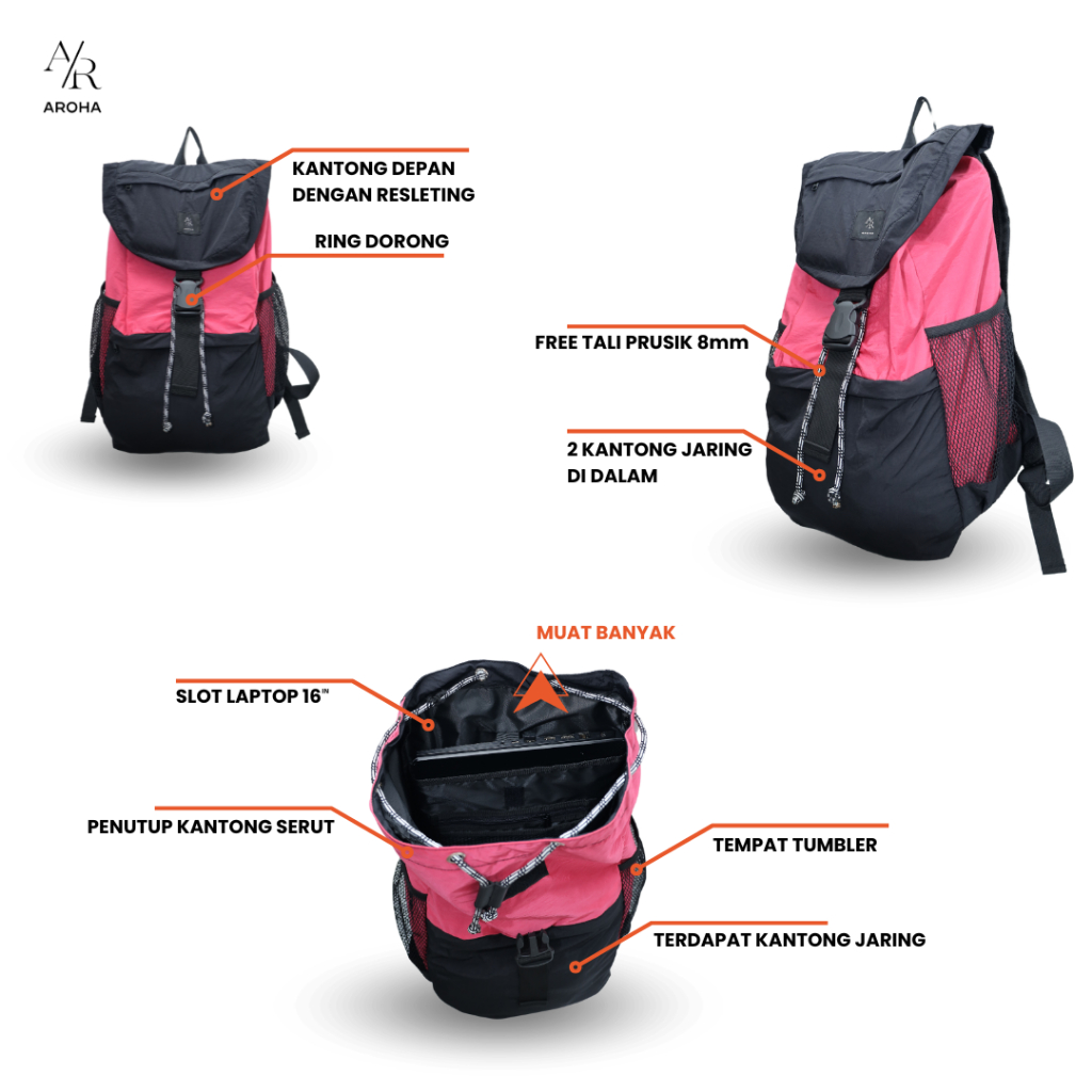 Aroha-Smile Pink Color-Backpack Kuliah-Tas Sekolah